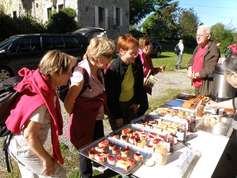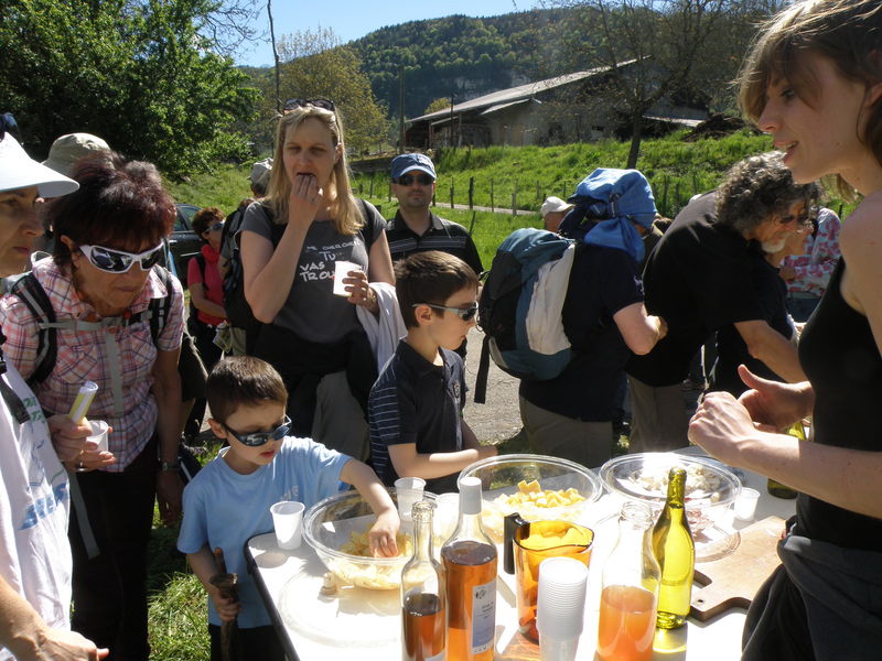Après la première grimpée du jour, les marcheurs ont pu profiter de l’apéritif sous un soleil inespéré.