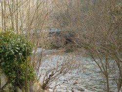Les fortes pluies des jours précédents ne permettent pas l’observation des vestiges du bac à traille qui rendait possible le franchissement de la rivière (voir livret)