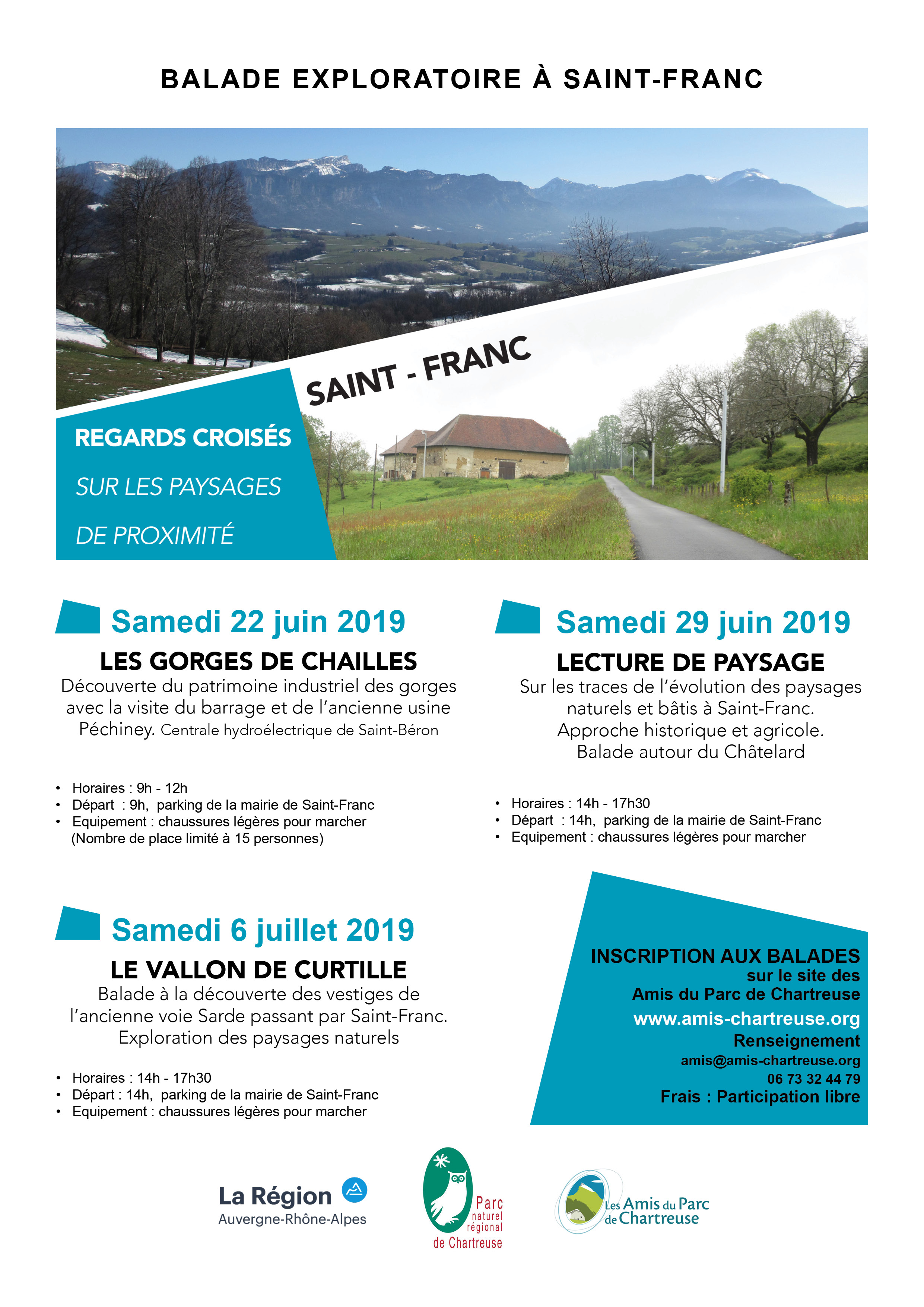 - samedi 29 juin 2019 , Lecture de paysage : Sur les traces de l’évolution des paysages naturels et bâtis à Saint-Franc. Approche historique et agricole. Balade autour du Châtelard