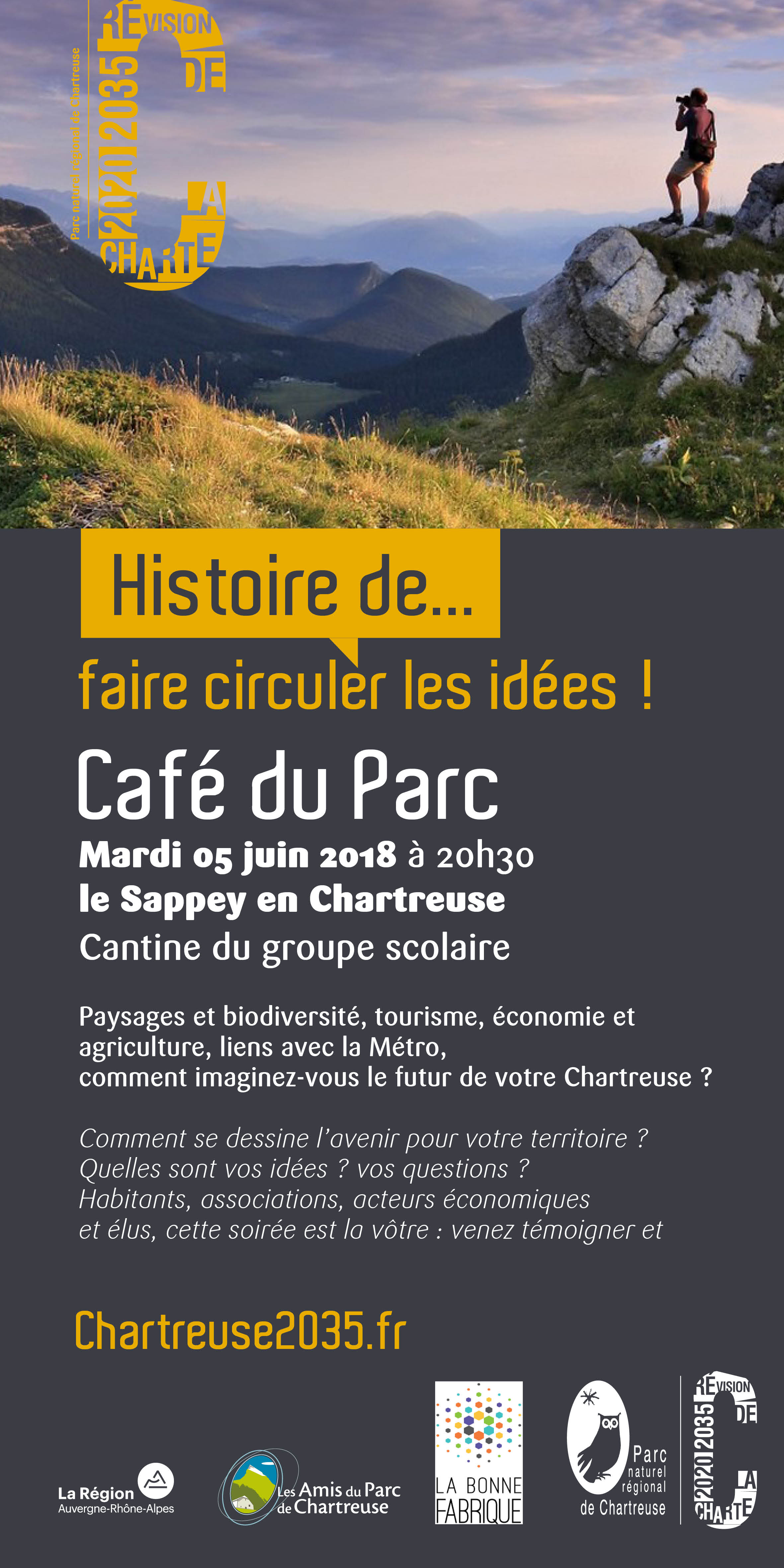 Habitants, associations, acteurs économiques et élus de Chartreuse, cette soirée est la vôtre : venez témoigner et proposer vos idées lors de ces Cafés du Parc !